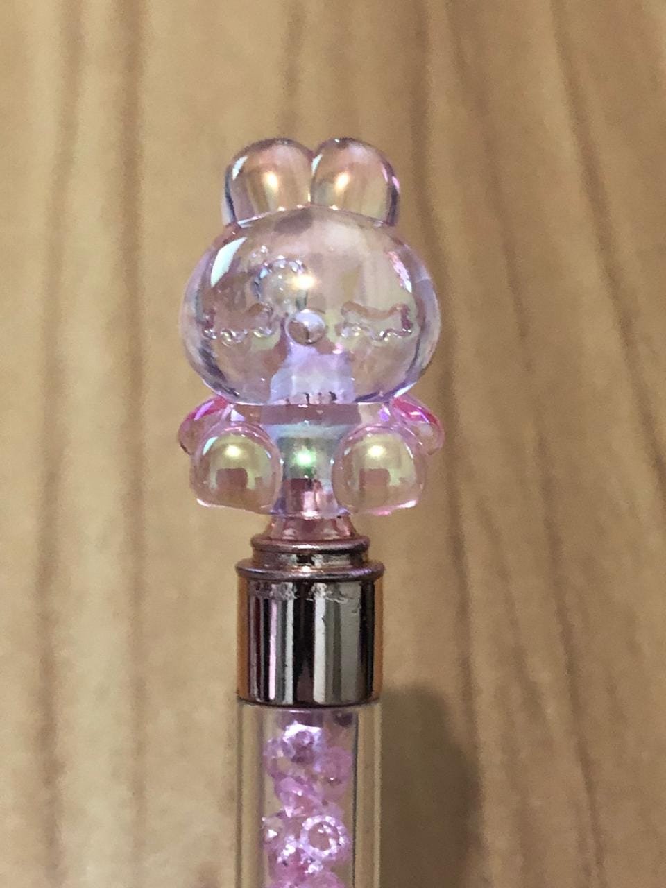 No topo da caneta, há uma figura decorativa transparente de um Coelho