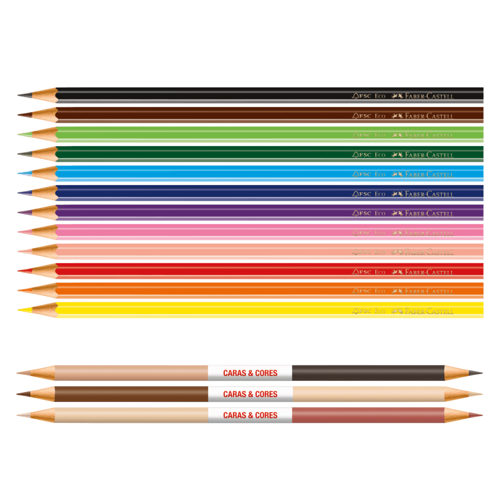 Os Ecolápis Faber-Castell da linha Caras & Cores foram desenvolvidas para celebrar a diversidade e estimular a criatividade das crianças com a formulação exclusiva de 6 tons de pele.