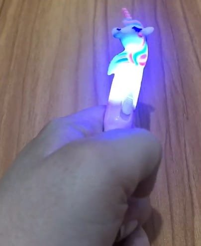 Na extremidade, destaca-se um enfeite de unicórnio fofo com uma crina vibrante em tons de rosa e azul, além de um chifre azul chamativo conta com um led.